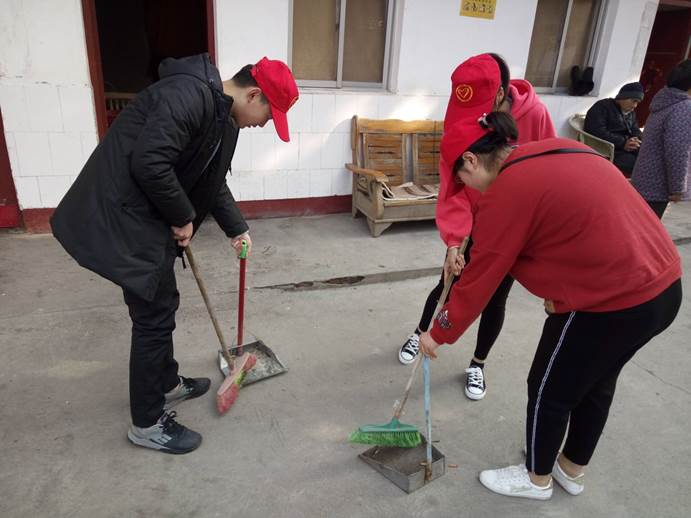 上午9点我们大一团总支成员在学校1号实训楼前集合完毕。到达敬老院后,我们受到了老人们和院领导、工作人员的欢迎。随后,我们就投入了紧张有序的忙碌中。在工作人员的指导下,我们为老人们洗水果,打扫院子,为行动不便老人整理房间,晾晒被褥。每个人都拿出了全部的热情和干劲。11:30活动进入了尾声,在老人们依依不舍的眼神中,我们不得不离开。