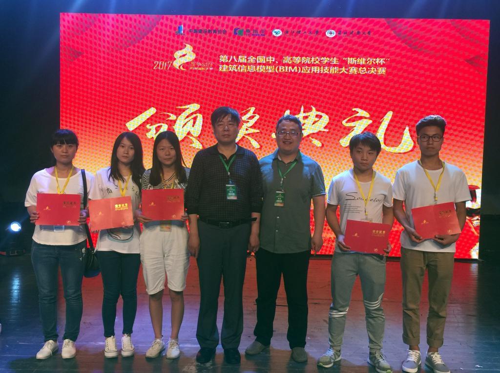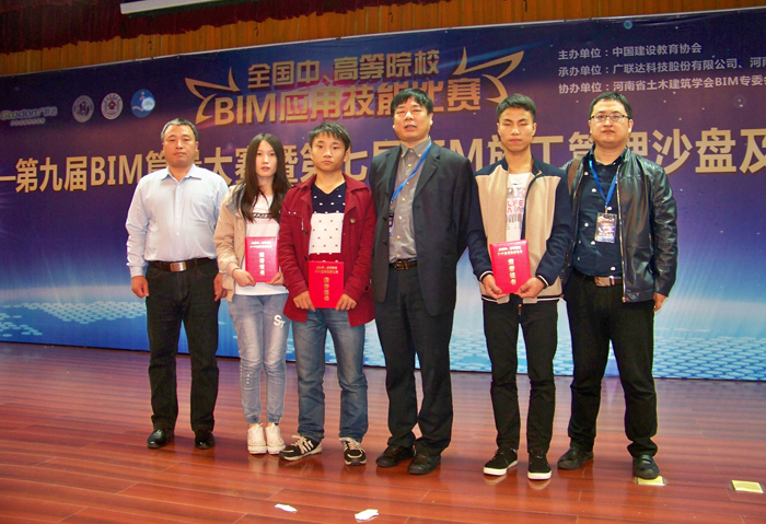 赵冬梅、周成科、李冠磊、段亚弟、张彩香老师指导的工程造价专业学生程少侠、牛建奇、戚倩倩、张秀杰、张香香5位同学组成的“BIM达人队”参加了竞赛的全部项目(4个专项,17个子项),荣获工程造价专项一等奖、绿色建筑分析专项二等奖、工程管理专项二等奖、工程设计专项三等奖,并获专科组全能一等奖,是河南省本专科唯一获得全能一等奖的院校。